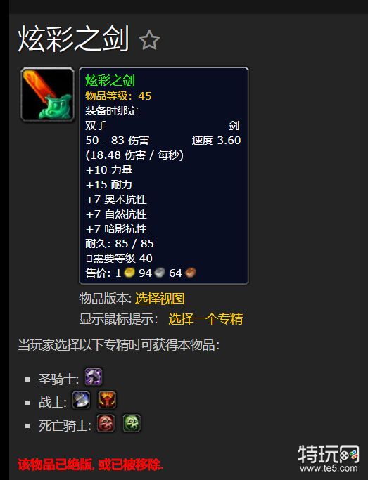 8.炫彩之剑回归,由荆棘谷海角的金鳞蜥蜴掉落。