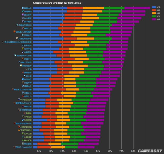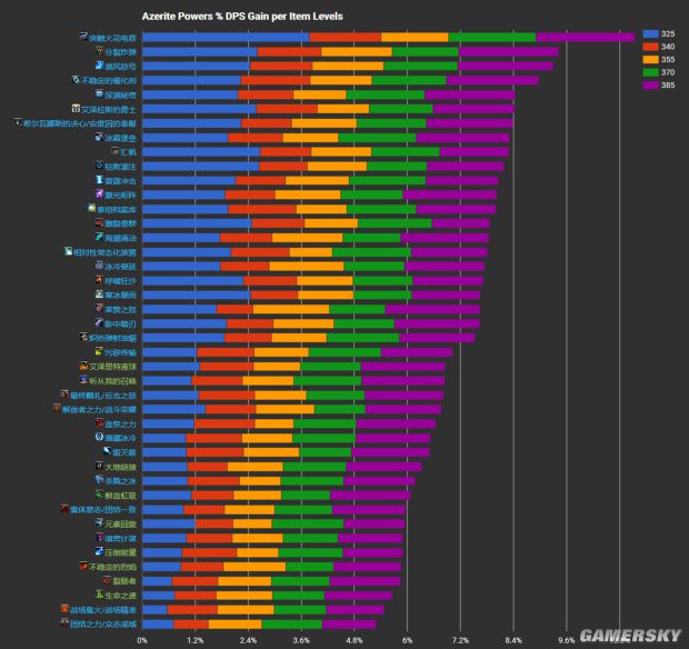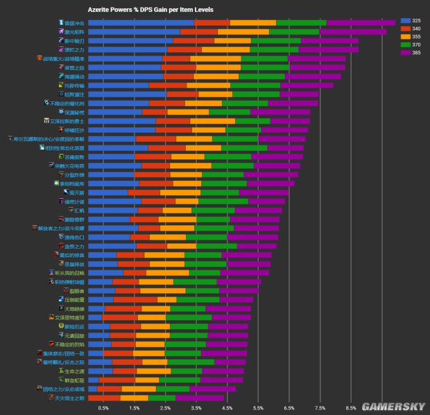 ·从堆叠特质排名AZERITE POWERS (BY STACK)来看,【寒冰暴雨】在有1层之后收益有所下降。